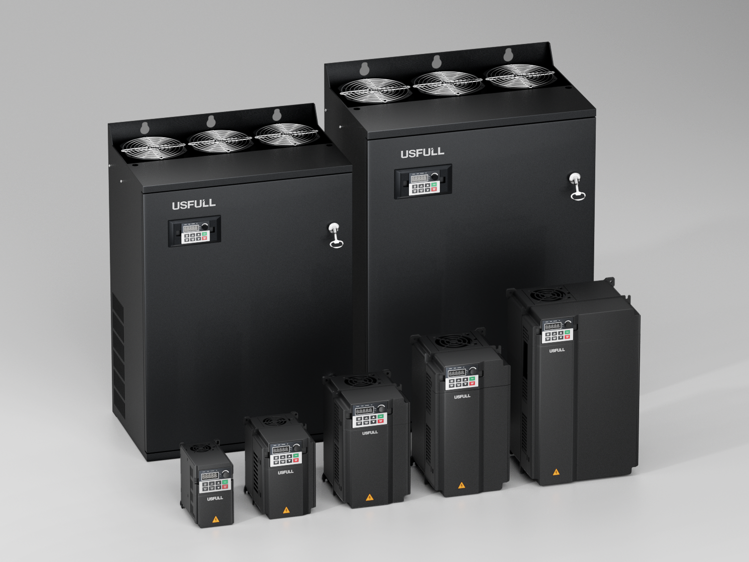 USFULL生產(chǎn)涵蓋全功率范圍(0.75kW至630kW)的逆變器,包括通用型號以及針對風(fēng)扇、水泵、機(jī)床主軸等應(yīng)用的專用型號,能夠滿足精確速度調(diào)節(jié)和節(jié)能的需求。采用智能制造和全流程質(zhì)量控制。
